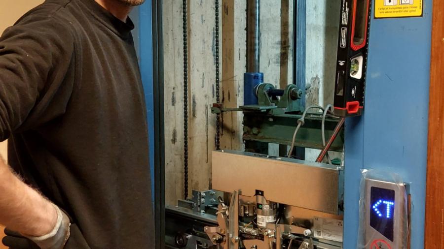 Bild 4. Vår excellenta hissmontör, Elias.
